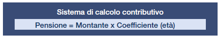 Come più volte esaminato su queste pagine, con questo tipo di calcolo, si apre una sorta di conto individuale per ogni posizione previdenziale, dove figurativamente vengono accumulati i contributi previdenziali. La pensione del lavoratore è data dalla sommatoria dei contributi versati nel corso della vita lavorativa, capitalizzati alla media quinquennale del Pil nominale e moltiplicati per il coefficiente di trasformazione stabilito dalla legge in base all’età del soggetto al momento del pensionamento.