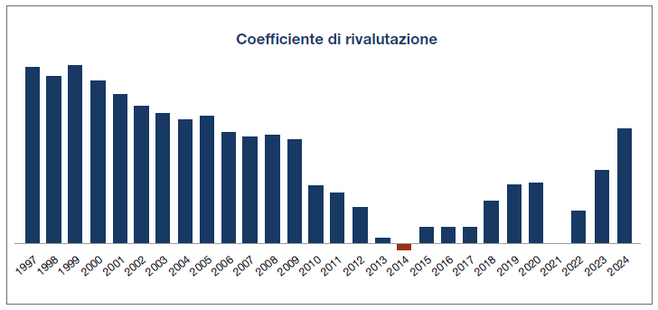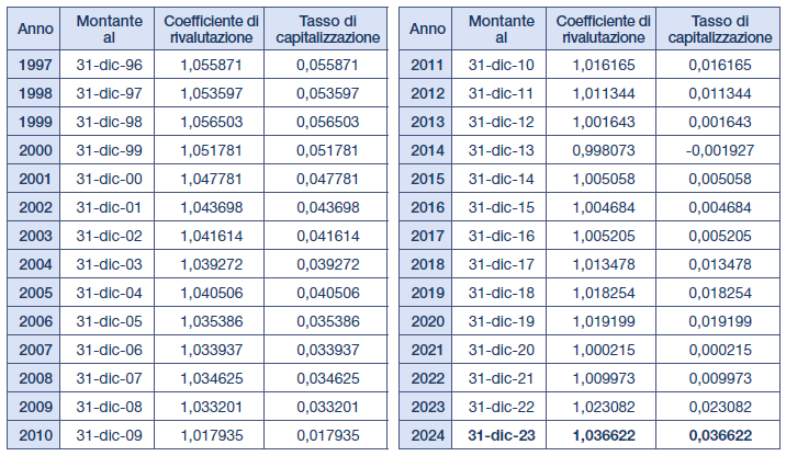 Con la nota protocollo n. 2545394/24 del 5 novembre 2024 l’Istat ha comunicato il valore del tasso annuo di capitalizzazione ai fini della rivalutazione dei montanti contributivi relativamente al 2024. Il tasso medio annuo composto di variazione del prodotto interno lordo nominale, nei cinque anni precedenti il 2024, risulta pari a 0,036622 e, pertanto, il coefficiente di rivalutazione è pari a 1,036622. Ciò sta a significare che, per i lavoratori che andranno in pensione a partire dal 1° gennaio 2025, il montante accumulato al 31 dicembre 2023 dovrà essere rivalutato per tale valore; mentre i contributi versati nell’anno 2024 non saranno oggetto di alcuna rivalutazione.